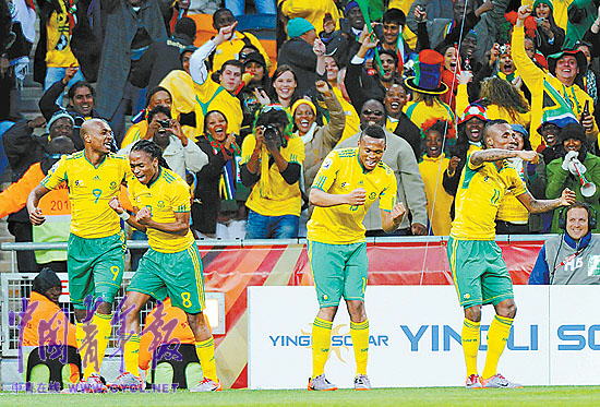 開幕式在南非時間今天下午舉行,但興奮的南非球迷已經(jīng)迫不及待提前慶祝這個國家歷史上極為特殊的一天——從前一天晚上開始,南非球迷的“瓦瓦祖拉”大喇叭就開始在約翰內(nèi)斯堡大街上響個不停直至深夜。