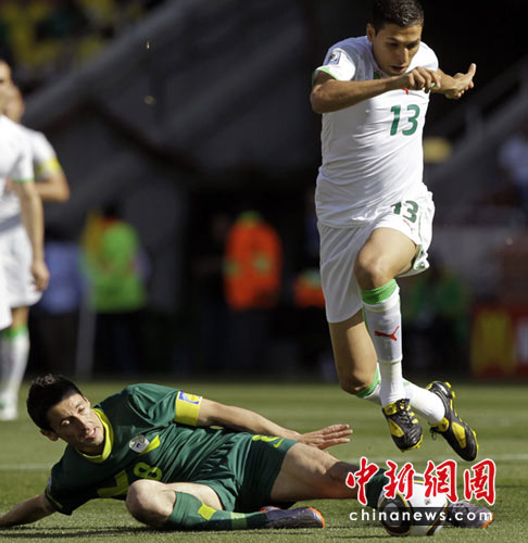 中新網(wǎng)6月13日電 北京時(shí)間今晚19:30,南非世界杯C小組迎來(lái)第二場(chǎng)較量,由阿爾及利亞對(duì)陣斯洛文尼亞。最終阿爾及利亞被罰下1人,0-1不敵斯洛文尼亞。