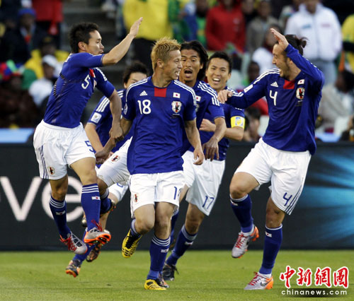 中新網(wǎng)6月14日電 北京時(shí)間22點(diǎn)整,南非世界杯E組日本與喀麥隆隊(duì)的比賽打響,雙方在布隆方丹的自由州球場(chǎng)展開(kāi)爭(zhēng)奪。最終經(jīng)過(guò)90分鐘激戰(zhàn),日本隊(duì)?wèi){借本田圭佑的進(jìn)球1-0擊敗喀麥隆,在小組出線(xiàn)之路上占得先機(jī)。