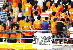 球迷無聲的抗議帶給魯能巨大的壓力,更大的尷尬在比賽結束后到來。0比0,魯能成為本輪中超惟一一支沒能在主場贏球的球隊,這場平局讓他們把中超榜首位置讓給了北京國安隊。比賽結束后,賽場上的球迷出聲了,“下課……”