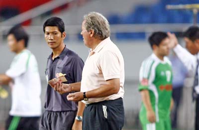 8月4日下午,剛剛獲得自己的中超首勝的阿里·漢正和球員們?cè)谟?xùn)練場(chǎng)上開(kāi)著玩笑,突然,本來(lái)晴好的天氣突然變臉,狂風(fēng)、暴雨在短短幾分鐘內(nèi)劈頭蓋臉地蹂躪著球場(chǎng)上的每一個(gè)人,本來(lái)笑哈哈的阿里·漢有點(diǎn)惱怒,他不得不和助手們一起躲進(jìn)了場(chǎng)邊的雨棚。結(jié)束訓(xùn)練后,雨還沒(méi)有停,濕透了的阿里·漢心情已經(jīng)好轉(zhuǎn),他還不知道自己已經(jīng)被足協(xié)處罰的消息。幾分鐘后,他再一次“透心涼”,記者把處罰結(jié)果第一時(shí)間傳達(dá)給他時(shí),阿里·漢的臉立即陰沉了下來(lái),并拒絕回答任何問(wèn)題。他告訴翻譯,“我什么都不會(huì)說(shuō)的!