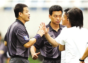 第17輪中超最后的兩場角逐昨天進(jìn)行,北京國安主場以3:0戰(zhàn)勝長沙金德,陜西中新浐灞隊(duì)在主場1:2不敵山東魯能隊(duì)。陜西中新隊(duì)成耀東賽后情緒有些難以控制,他非常憤怒地暗指了對裁判的不滿。