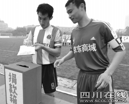 2:1的勝利結(jié)束之后,連續(xù)兩 場進(jìn)球的成足隊(duì)長李鋼說,“希望災(zāi)區(qū)的人們像我們今天比賽一樣,無論遇到什么樣的困難,只要我們團(tuán)結(jié)一心,只要我們選擇堅(jiān)強(qiáng),我們都能獲得最終勝利!”比賽結(jié)束之后,球迷散去的人群中還有纏著綠絲帶的志愿者球迷在募捐,“球賽盡管結(jié)束了,可是我們還想為災(zāi)區(qū)再多做一點(diǎn)事情,我們做得越多,他們受到的苦難就會(huì)越少!