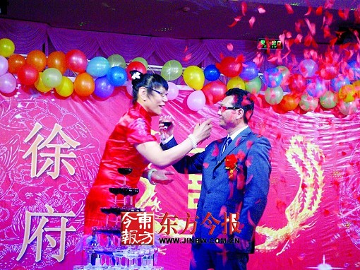 昨天上午,在平頂山市一家名叫飛行皇冠假日酒店里,一場(chǎng)規(guī)模不大但隆重的婚禮在酒店3樓舉行。婚禮主角就是鄭海霞和徐慶華。
