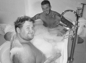 貝克漢姆手術成功,英國媒體心情也不錯。《每日鏡報》昨天發(fā)了一張貝克漢姆和英國喜劇明星科登一起洗“鴛鴦浴”的圖片,這張照片是幾周前在米蘭拍的,當時兩人都是為BBC的一個慈善短片客串。兩人在浴缸里一共呆了3分鐘,貝克漢姆還對科登身體的多個部位點頭贊賞。這段畫面被BBC稱為這段慈善短片中“最有喜劇效果的鏡頭”。