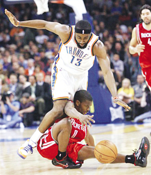 在剛剛加盟火箭隊的06-07賽季,“暴力扣將”斯威夫特有一天在家里休息,飛來一只蒼蠅飛到他的眼睛上,他用粗大的手指去揉眼睛,結果給揉出了結膜炎被迫缺席了9場比賽,據說用手指揉眼睛發(fā)生結膜炎的概率是百萬分之一。