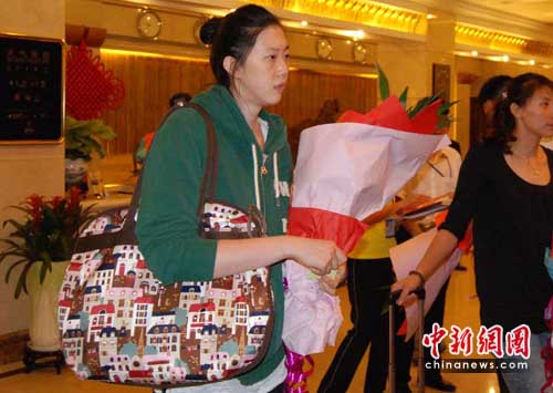 由于飛機(jī)晚點(diǎn),中國女排姑娘抵達(dá)我市比原定時(shí)間足足晚了1個(gè)多小時(shí)。當(dāng)大巴車停穩(wěn)以后,女排領(lǐng)隊(duì)胡進(jìn)第一個(gè)走下車來,向眾人打招呼,緊隨其后的則是身著米黃色T恤衫的主帥王寶泉,隨后15名隊(duì)員陸續(xù)下車,接受學(xué)生們獻(xiàn)上的鮮花。