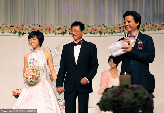 對(duì)于大多數(shù)體育迷來說,人們最關(guān)心的就是乒壇一姐究竟嫁了一個(gè)什么樣的人。此前,關(guān)于張怡寧丈夫的各種信息和說法真假難辨,而昨天的婚禮上,這位神秘人物終于曝光了,他與張怡寧之間的緣分,還是體操王子李寧牽的紅線。不過處事十分低調(diào)的新郎徐威將所有媒體都拒之門外。