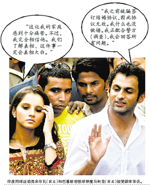 4月5日,印度警方扣押了巴基斯坦板球明星馬利克的護(hù)照,印度警方稱馬利克迎娶米爾扎的舉動(dòng)可能犯下了重婚罪。