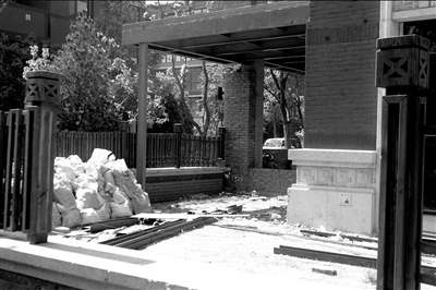 據小區(qū)物業(yè)的一名負責人介紹,2008年,前乒乓球世界冠軍劉偉在該小區(qū)尚園×號樓×單元1028室辦理入住手續(xù),并開始進行室內裝修。今年4月,幾名工人來到1028室,開始對外墻進行整修。物業(yè)見此這種情況前去詢問,得知業(yè)主要在緊鄰樓層的小花園內搭建一座20多平方米的二層建筑。他們立即和業(yè)主進行協商,但沒有結果。本月14日,又有一批工人過來,不聽勸阻繼續(xù)施工。