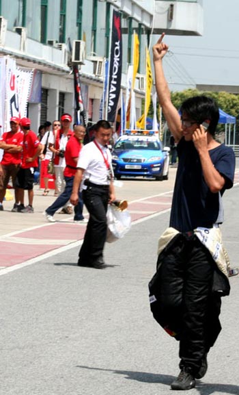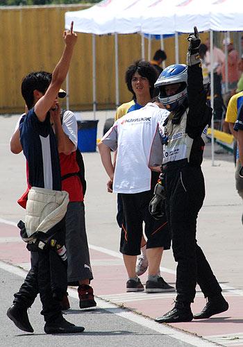 在事故發(fā)生后,韓寒鉆出已經(jīng)面目全非的賽車,用盡全力狠狠地摔了下車門,然后走下賽道。掙扎著駛回賽道的王睿,也在幾圈后遭遇裁判黑旗而退出比賽。當王睿將車開會維修區(qū)時,已經(jīng)脫下一半賽服的韓寒,一邊打電話,一邊上前安慰王睿。隨后,兩人非常默契地同時伸出中指,高高地指向天,并各自轉(zhuǎn)了360度,以便讓現(xiàn)場的更多觀眾和記者看到。此舉立刻引起軒然大波。