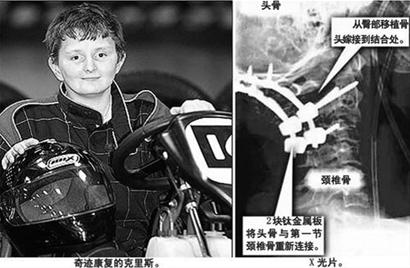 當(dāng)克里斯被送到南漢普頓綜合醫(yī)院搶救后,醫(yī)生發(fā)現(xiàn)他的傷勢(shì)非常嚴(yán)重。醫(yī)院的脊椎外科醫(yī)生達(dá)維斯回憶說:“當(dāng)時(shí),他的頭骨已經(jīng)與第一節(jié)頸椎分離,看上去好像隨時(shí)都可能從身上掉下來。”