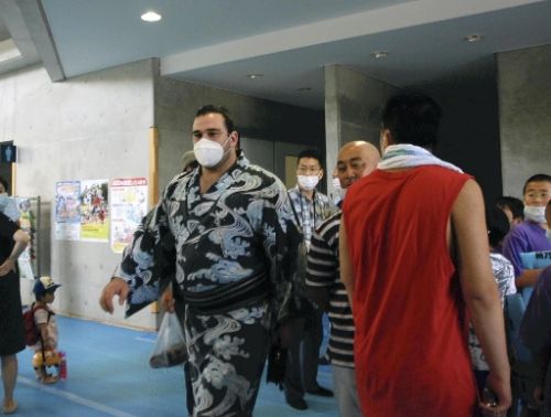 這次率隊(duì)巡業(yè)的是日本相撲橫綱的朝青龍。為了對(duì)孩子們負(fù)責(zé),預(yù)定舉行的力士與孩子們的“兒童訓(xùn)練”不得不中止下來。許多孩子為此遺憾連連,在現(xiàn)場(chǎng)向戴著口罩的大相撲不斷地?fù)]手致意。