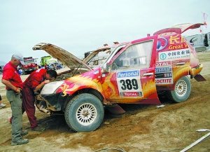 至本報昨天截稿時,中國車手除趙永國退賽外,只有金城摩托車隊的蘇文敏完成了第七賽段的艱苦比賽。而后續(xù)的情況是,汽車組威麟車隊的老將盧寧軍以10小時1分第32個完賽,成為當天汽車組中國車手中唯一沒有被罰時的人。其余3位車手因為在組委會關(guān)門時間之后才返回,均被罰12小時。在不計被罰時間的情況下,長城車隊的周勇成績是15小時08分45秒,列賽段第44。老盧的隊友江耀桓用了16小時38分11秒,賽段成績第57。興業(yè)銀行酷車時代的朱金忠用時16小時47分30秒,成績列第58位。