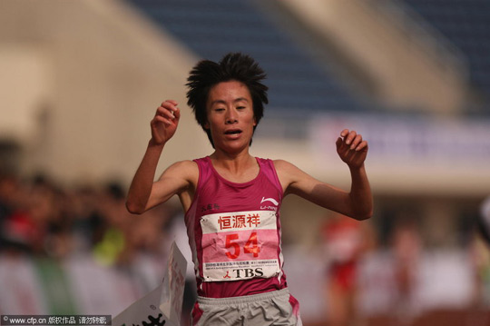 由于本次北京國際馬拉松賽同時也是全運會馬拉松的比賽,所以第一位沖過終點線的中國選手、來自內(nèi)蒙古的小將韓剛就獲得了全運會男子馬拉松的金牌,這也是內(nèi)蒙古的首枚全運田徑金牌。