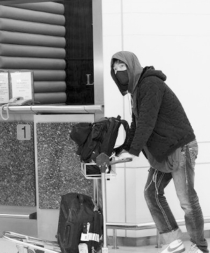 中國飛人劉翔領(lǐng)銜的中國田徑隊(duì)北京時(shí)間昨天上午抵達(dá)卡塔爾多哈,受到了當(dāng)?shù)叵杳缘臒崃覛g迎,幾位漂亮女翔迷還打出了“劉翔加油”的橫幅。長途飛行讓中國田徑隊(duì)一行人看起來都有些疲憊,劉翔推著行李車走出來時(shí),干脆罩住了臉,變身“蒙面超人”。
