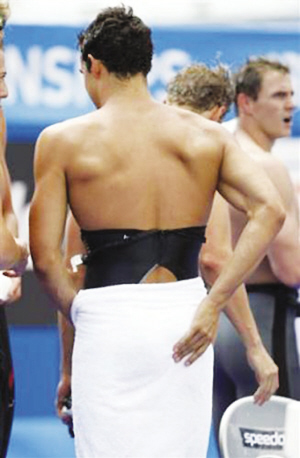 意大利時(shí)間昨天下午進(jìn)行的男子4×100米自由泳接力預(yù)賽中,伯恩斯代表美國隊(duì)參加了第三棒比賽。當(dāng)他出發(fā)起跳時(shí),泳衣臀部裂開一條大口子,但敬業(yè)的伯恩斯仍舊堅(jiān)持游完全程,上岸后尷尬的美國小伙子迅速用一條白色大毛巾遮住了走光的臀部。最終美國代表隊(duì)以3分11秒64、預(yù)賽第四名成績(jī)晉級(jí)決賽。