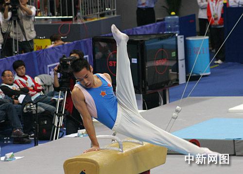 21日晚的中國第十一屆運動會主場館——濟南奧體中心體操名將薈萃。在此間進行的體操單項決賽中,被譽為“小馬神” 的北京奧運會男子體操鞍馬冠軍肖欽再次亮相鞍馬賽場。經過與實力選手的一番激烈角逐,這位“鞍馬王子”奪的金牌,“策馬揚鞭”朝天嘯。