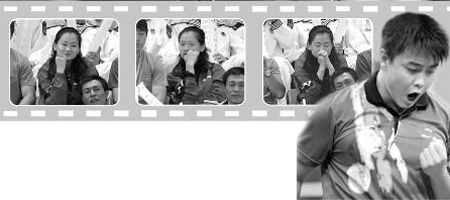 開賽后,王皓很快2:0領(lǐng)先,彭陸洋看得興高采烈。沒想到,馬琳迅速調(diào)整了狀態(tài),連追兩局。第五局,王皓8:10落后,彭陸洋嚇得閉上了眼睛,不敢看比賽。過了好一會兒,她才睜開眼睛,當(dāng)?shù)弥杏演斍蚝,顯得非常難過。