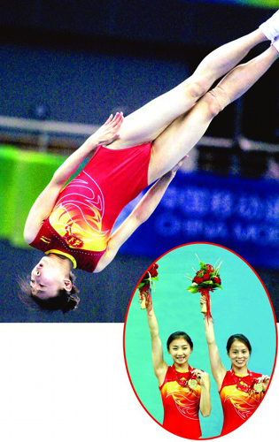 在12日的團(tuán)體預(yù)賽中,奧運(yùn)冠軍何雯娜身先士卒,代表福建隊(duì)兩次出場(chǎng),有著“最美奧運(yùn)冠軍”美稱的她在觀眾的喝彩聲中走向賽場(chǎng)。雖然首跳發(fā)揮不錯(cuò),但是接下來的第二跳卻因?yàn)槌霈F(xiàn)失誤讓觀眾捏了一把汗。預(yù)賽的表現(xiàn)欠佳,讓教練胡星剛也有些擔(dān)憂,“決賽的時(shí)候就看她的狀態(tài)了。”