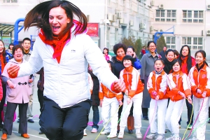 昨天,曾26次打破世界紀(jì)錄的俄羅斯撐桿跳運(yùn)動(dòng)員伊辛巴耶娃應(yīng)邀來到史家胡同小學(xué)分校,指導(dǎo)學(xué)生們撐桿跳的基本技能,并饒有興致地學(xué)起跳繩、抖空竹、滾鐵環(huán)等趣味體育活動(dòng)。