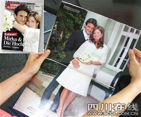 《瑞士畫報(bào)》刊載的照片中,費(fèi)太太米爾卡身著米白色婚紗,手持一束白色鮮花,簡潔之外突顯高雅。照片中,天王的右手放在米爾卡圓潤的腹部上,慈愛地?fù)崦约旱膶氊。天王在接受采訪時(shí)首度透露牛寶寶的性別:“是個(gè)男孩,名字還沒有想好!边@位“小王子”將在今年夏天出生。此外,一貫好男人的費(fèi)德勒還發(fā)表了幸福的婚后感言:“我們在一起已經(jīng)很長時(shí)間了,所以結(jié)婚這件事感覺很放松。一個(gè)人結(jié)婚后,思想、生活都會隨之有所改變,我很喜歡這種感覺!