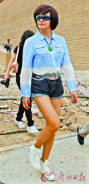 在將近三個小時的參觀過程中,劉曉慶也成為了乾陵一道風景線。當劉曉慶一身熱辣的運動裝出現(xiàn)在大家面前時,不少人都驚呼,“還是一副少女的感覺!彼倪\動裝配以黑色超短裙,半截黑絲襪做點綴,還是顯出了比較清純的氣息。對此,劉曉慶回答道:“我風格比較多,愛好也比較多,今天因為要走很多路,所以是這樣的裝扮。不知道今天會有媒體到場,不然我一定要好好打扮一番,不要素顏!