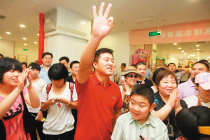 昨天上午11點,包括托雷斯、卡卡、蘭帕德、C·羅、梅西等世界杯球星簽名的球衣在活動現(xiàn)場拍賣。梅西簽名的球衣起拍價500元,“1000”,有人喊出新價格,這人正是滿文軍。隨后現(xiàn)場陸續(xù)有人喊出1510元、1650元的價格,而滿文軍對這件球衣志在必得,最終以1800元的價格拍得。滿文軍說:“今天超出了我的本意,本來是為這個活動助陣,奉獻(xiàn)一下自己的愛心,沒想到拍到了我喜歡的球星的球衣,這個價格對我來說物超所值!钡诙馁u的是C·羅的簽名球衣,滿文軍再次參與競拍,喊出1800元的價格,F(xiàn)場讀者也不示弱,陸續(xù)喊出2000、2100、2150、2200元。看到滿文軍志在必得的樣子,一位男士不得不現(xiàn)場求情:“求你了滿哥,我就是喜歡C·羅,您就成全我吧!币痪湓挾盒α爽F(xiàn)場的所有人,滿文軍也不再競價,順?biāo)浦圩隽巳饲,讓他?200元的價格拍得這件球衣。