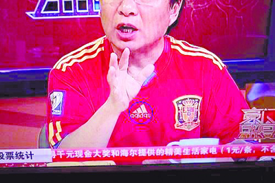 在不少人印象中,買高仿版球衣是那些“囊中羞澀”球迷的無奈之舉,但最近央視《豪門盛宴》節(jié)目中,一名央視名嘴卻穿著疑似山寨版球衣主持節(jié)目。