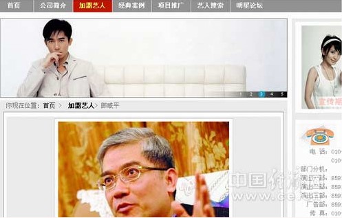 劉謙、梁朝偉、張曼玉、郎咸平這幾個名字你會想到什么?中國經(jīng)濟網(wǎng)記者今日在瀏覽某演藝經(jīng)紀網(wǎng)站發(fā)現(xiàn),平日里在媒體上以觀點獨到著稱、曾炮轟德隆系、痛斥國有企業(yè)MBO改革失敗、力推企業(yè)經(jīng)理人要講信托責(zé)任的香港中文大學(xué)教授郎咸平竟然出現(xiàn)在其中,與梁朝偉、劉謙、SHE組合等當(dāng)紅一樣也出現(xiàn)在“加盟藝人”之中。郎咸平教授曾在不同場合號稱自己要“上春晚”、“頂替趙本山”。難道真是邁出了這一步?
