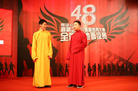而記者在8月8日舉辦的移動MM之《喜劇之王2》星呢選秀大賽48強晉級賽華北站的比賽現場,意外的發(fā)現參賽的17位選手中17號的黃鶴飛竟然也是來自德云社的弟子。比賽中黃鶴飛的表演基本上都以相聲為主,只是比賽最后一個環(huán)節(jié)黃鶴飛以醒目的紅褲衩外穿的超人造型相聲表演讓評委很是不解。