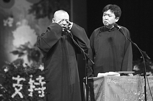 演出在當晚7:30左右開場,郭德綱和于謙都身穿傳統(tǒng)長衫出場,笑容滿面,開場白是:“感謝在座的衣食父母!比珗稣坡曧懫。在當晚演出中,郭德綱和于謙一共說了四段經(jīng)典作品,并且在觀眾一再要求下,返場了五次。郭德綱一向擅長拿真實事件“砸掛”。在返場中,郭德綱就用“保羅”和于謙父親串聯(lián)了起來,讓現(xiàn)場笑聲不止。除了郭德綱和于謙二人的表演,在近3小時的整場演出中,還有多名弟子上臺演出,但并無知名度較高的弟子出現(xiàn)。演出結束后,一群“綱絲”仍舊不愿離場,留在門口想與郭德綱合影簽名,并且打出橫幅支持郭德綱。面對觀眾如此熱情,郭德綱也是感慨道,“我能力有限,就會說個相聲,只要大家喜歡,我們就愿意給大家?guī)砜鞓!睋?jù)了解,本場演出所有低票價已經(jīng)在一周之前全部售出,而最高門票也是所剩無幾。在離開場還有一個鐘頭的時候,黃牛黨都聚集在售票處,但并不是出售門票,而是收門票。當記者向黃牛黨打聽票價時,得到的回答只有“沒票,你有票賣嗎?”(王少文)