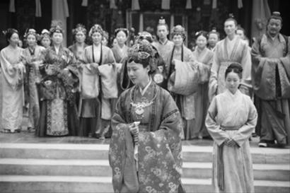 新版《紅樓夢》中還有一個大場面——“可卿喪禮”,規(guī)格絲毫不次于“元妃省親”的花費,單是停靈就用了49天,“寧國府街上一條白漫漫人來人往,花簇簇官去官來”,加上數(shù)十位僧道日夜超度,薛蟠送來的、無人敢擅用的檣木棺,還有瑞珠殉葬,秦可卿的喪禮一時間有了親王級別的排場,引得賈政等人連連搖頭。而這場戲拍攝得也極為仔細,為符合原著基本精神,遵照當時的禮儀規(guī)矩,賈府一應(yīng)女眷均處在一個白幃子里。