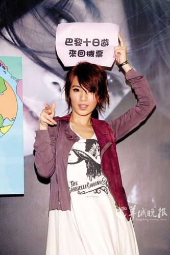 獨挑大梁唱完3場后,田馥甄高喊:“好爽,最想喝酒!”為了慰勞她,唱片公司讓她抽機票,結果她竟抽中當中的“最大獎”巴黎商務艙來回機票。田馥甄興奮地說自己終于有了運氣:“我以前買‘刮刮樂’都沒中過。”被問到會不會想在明年入圍金曲獎最佳國語女歌手獎項時,田馥甄說:“這應該不是‘妄想’,我有信心!