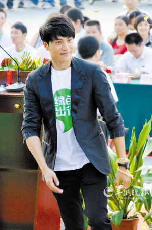 10月17日下午,大眾電影百花獎(jiǎng)“新科影帝”陳坤來(lái)到廣州,在白云會(huì)議中心參加“綠色出行”公益活動(dòng)啟動(dòng)儀式。