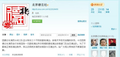 德云社在微博指出:“因德云社演員分成三隊(duì)且分別在三個(gè)不同的劇場(chǎng)演出,故每天節(jié)目無法隨時(shí)改變。今日因有德云社演員自行安排至張一元?jiǎng)?chǎng)演出并沒有提前通知演出安排部門及當(dāng)日演出隊(duì)。為了不影響正常的演出秩序,所以沒用把該演員安排到今日演出中!