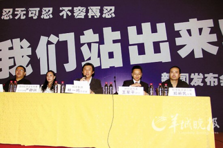昨天下午,深圳“稻草文化”公司打著“忍無可忍,不容再忍———我們站出來”的橫幅召開新聞發(fā)布會(huì),表示要“公開‘訂金門’事實(shí)真相”。