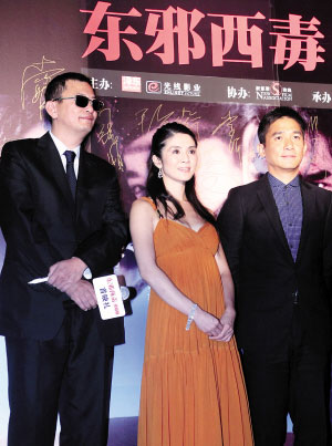 今天正式上映的《東邪西毒終極版》昨晚在西單大悅城首都影院舉行了首映式。除了王家衛(wèi)、梁朝偉、楊采妮等主創(chuàng)外,馮小剛和趙本山等諸多嘉賓也前來捧場。讓人感到意外的是,頭一天還與王家衛(wèi)等人一同跟媒體見面的劉嘉玲昨天并沒有出現(xiàn)在現(xiàn)場。此外,昨晚現(xiàn)場幾乎成了懷念張國榮的專場,眾多“榮迷”聚集在紅地毯兩旁,舉著張國榮的畫像喊著他的名字。幾乎每一位嘉賓都表示,自己此番主要是為了在大銀幕上看張國榮來的。只有馮小剛和趙本山沉默地走完紅地毯,簽名之后匆匆入場,沒有發(fā)表任何看法。記者 楊蓮潔 鄒紅/攝