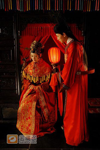 2009年元旦,新版電視劇《紅樓夢(mèng)》攝制組照常緊鑼密鼓地忙碌著,而這一天拍攝的戲份正是寶玉大婚。在北京廠的攝影棚內(nèi),寶玉房張燈結(jié)彩,一派喜慶氣氛。高懸大紅彩帳的堂前掛著三幅婚聯(lián):“彩筆喜題紅葉句 華堂欣詠采萍章”、“綠窗待月春調(diào)瑟 紅袖添香夜讀書(shū)”、“吐鳳雄才成博議 畫(huà)眉彩筆點(diǎn)新詩(shī)”。而當(dāng)天的婚俗禮儀據(jù)說(shuō)也是講究多多。寶玉寶釵拜堂異與旁人的三拜,而是四拜:一拜天地諸神,二拜賈母,三拜賈政王夫人,四為夫妻對(duì)拜……當(dāng)天參演的主要角色有王夫人(歸亞蕾)、薛姨媽(龔麗君)、尤氏(賈妮)、王熙鳳(姚笛)、賈政(許還山)、賈赦(李健)、賈珍(姜彤)、成年寶玉(楊洋)、成年寶釵(白冰)、成年惜春(徐行)、鴛鴦(蔡飛雨)、襲人(李艷)、鶯兒(方安娜)、平兒(程媛媛)、彩云(呂途)、雪雁(宣璐)等近30位演員,個(gè)個(gè)盛裝華服,喜氣洋洋。戲里戲外的喜慶氣氛聯(lián)成一片。李少紅導(dǎo)演笑稱“這個(gè)紅火的場(chǎng)面也算是新版《紅樓夢(mèng)》跨入09年的一個(gè)開(kāi)門(mén)紅吧!