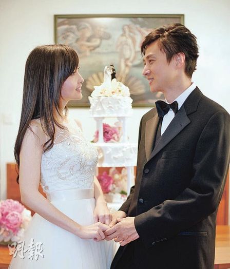 昨晨周慧敏的御用發(fā)型師與化妝師已到兩人愛巢金山花園,為一對(duì)新人整妝,至下午約3時(shí)10分,谷祖琳與男友到場,其它友人亦陸續(xù)駕車抵達(dá)金山花園,而且全部都拉上窗簾,一切都變得絕密。據(jù)知儀式在下午4時(shí)在家中進(jìn)行,結(jié)婚蛋糕早已送抵;家中布置以白色為主,有如一個(gè)小型結(jié)婚禮堂一樣,當(dāng)新娘子出現(xiàn)在朋友面前時(shí),即引來全場歡呼,接在婚姻監(jiān)禮人的見證下,倪震含淚發(fā)誓一心一意只對(duì)周慧敏好,無論今后生老病死都甘苦與共,令到周慧敏感動(dòng)得熱淚盈眶,表示愿意嫁這個(gè)一生的最愛。