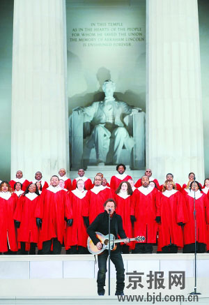 北京時(shí)間今天凌晨(當(dāng)?shù)貢r(shí)間1月18日下午),即將上任的美國新一任總統(tǒng)奧巴馬的就職音樂會(huì)在華盛頓林肯紀(jì)念堂前舉行。碧昂斯、博諾、布魯斯·斯普林斯汀、丹澤爾·華盛頓和湯姆·漢克斯等一線演藝明星到場助陣。