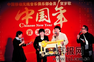 由成龍、譚晶、常石磊合唱的“賀年歌曲”《中國年》,上周末,舉行了無線音樂下載的首發(fā)式。在這個主題之外,成龍宣布將新人常石磊簽至自己公司,并且把今后成龍出品的電影音樂都交給這位新人參與制作。