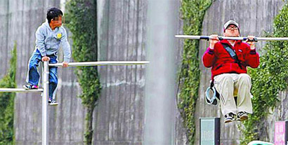 伊哈一家三口年初三到北海道團(tuán)聚,之后悄悄返臺(tái),據(jù)說(shuō)這次碰面是解決家務(wù)事,昨下午記者目擊哈林帶哈利到大佳河濱公園,好動(dòng)的哈利一下車(chē)就直沖單杠,掛在杠子上蕩來(lái)蕩去,身手矯捷。哈林不時(shí)比手畫(huà)腳指導(dǎo)哈利如何使力,還童心未泯走到較高的單杠前大手一拉,吃力地拉了3下。隨后哈林抱起哈利教他爬樹(shù),父子親近大自然玩得忘我。