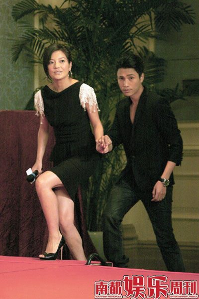 而陳坤也不讓搶鏡的趙薇專美于前,他豪氣派發(fā)數(shù)十封紅包給現(xiàn)場(chǎng)記者當(dāng)作年后開(kāi)工的開(kāi)門利是,令到現(xiàn)場(chǎng)一片歡騰。由于開(kāi)機(jī)當(dāng)天正臨近情人節(jié),記者紛紛要求趙薇和陳坤這對(duì)銀幕情侶攜手?jǐn)[拍幾張親密愛(ài)人的pose,二人也十分配合,發(fā)布會(huì)上也很是投入地“演出”情侶間的拌嘴畫面,陳坤先爆自己不喜歡趙薇這一類型的,因?yàn)椤八腥藲饬恕,趙薇則回嘴自己“其實(shí)一直很有女人味,都是被陳坤亂造謠把名聲搞壞了!庇杏浾哐垡(jiàn)如此氣氛,便趁熱打鐵地詢問(wèn)兩人是否有發(fā)展可能,沒(méi)料到氣氛一下子降至冰點(diǎn),向來(lái)感情生活神秘的陳坤臉色突變,干脆別過(guò)頭去,不予回答,最后還是趙薇化解了尷尬場(chǎng)面,她有些嚴(yán)肅地說(shuō):“我倆各自都挺多人追的,就還是別在一起給其他人一些機(jī)會(huì)吧!