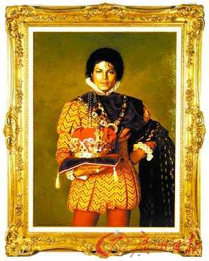 拍賣物品中有不少都像是一個國王的行頭。有一幅杰克遜的肖像油畫,他打扮得像個國王,創(chuàng)作于1995年,鑲嵌精致的金色畫框。市場估價在4000~6000美元。一件紅色的天鵝絨斗篷,帶著奢華的白貂皮領(lǐng)、金色的飾帶、金色十字勛章,估價雖然只有300~500美元,但讓人不由想起國王加冕儀式中的裝束。還有一個皇冠形胸針,不過鑲嵌的都是人造寶石,估價只有80~120美元。