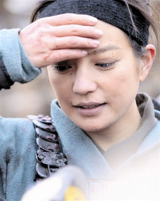 在陳坤所在一組,由于人數(shù)眾多,記者一時沒有找到穿著盔甲混在士兵中的陳坤。旁邊有人提示:“帽子上帶尖的是他!边@場戲中,陳坤率領(lǐng)的北魏軍隊和柔然軍隊正在大戰(zhàn)。為保證安全,道具師把所有兵器換成塑料制品,人群中的陳坤“越戰(zhàn)越勇”,一刀砍下去就把塑料盾牌上的油漆削掉一大塊,道具師在停拍時趕緊拿到一旁補漆。