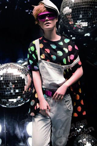 復(fù)古的條紋西服借鑒了Tuxdo的元素,像踏著鼓點(diǎn)、漫不經(jīng)心的爵士舞伶;不規(guī)則的圓點(diǎn)襯衫搭配金屬太陽鏡,轉(zhuǎn)眼間搖身一變成了Disco舞場里的搶眼明星;簡單的T恤與緊質(zhì)的運(yùn)動(dòng)褲,則仿佛小巷里熱愛復(fù)古舞步的搖擺小青年。