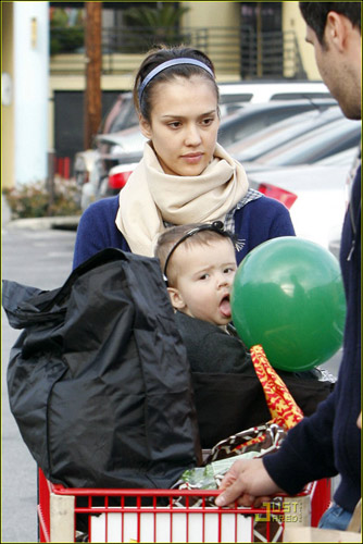 杰西卡·阿爾芭的甜美一向是毋庸置疑的,3月15日杰西卡·阿爾芭帶著女兒和丈夫一起去超市買(mǎi)東西,當(dāng)天的杰西卡·阿爾芭身穿藍(lán)色褲襪配藍(lán)色格子外裙,頭帶藍(lán)色發(fā)卡,而手中的小美妞則是改黑色系搭配,黑色小褲子配黑色小鞋頭帶黑色發(fā)卡,看來(lái)母女都愛(ài)發(fā)卡啊。