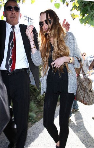 當(dāng)天林賽帶上了自己最?lèi)?ài)的幾乎能遮住整個(gè)臉的黑超墨鏡,外套是現(xiàn)在最流行的白色網(wǎng)眼外套,金棕色的頭發(fā)長(zhǎng)長(zhǎng)的搭在肩上,我們的街拍女王好像又要回來(lái)了。但是林賽好像不喜歡狗仔跟拍,一直是低著頭或者用手捂住自己的臉。