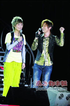 林俊杰成為了本場(chǎng)演唱會(huì)的神秘壓軸嘉賓。他不僅帶來(lái)了自己的《小酒窩》,還在臺(tái)上和李宇春同場(chǎng)競(jìng)技,表演火爆動(dòng)感的斗舞。林俊杰手拿道具槍連番向四周掃射,氣勢(shì)不遜江湖大哥;李宇春一身運(yùn)動(dòng)裝扮,在蹦床上展示動(dòng)感青春舞姿。二人默契的配合和各自的精彩演繹掀起了演唱會(huì)的高潮。記者 齊帥 實(shí)習(xí)生 史迎利